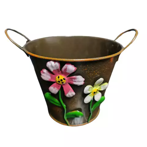 Vaso Cachepô Decorativo em Lata com Alça (Flor) TOP GARDEN